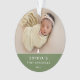 Enfeite de Natal com a primeira foto do seu bebê, apresentando sua foto favorita de recém-nascido em verde abacate com texto moderno e elemento de árvore de Natal. Faz um presente encantador!!