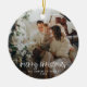 Um ornamento de fotos de feriado moderno com um roteiro "Feliz Natal" em branco. O nome e o ano podem ser facilmente personalizados para um toque pessoal. Uma design moderna, minimalista e contemporânea para se destacar nesta temporada de férias!