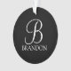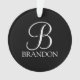 Monograma personalizado e Dif de nome apresentam monograma personalizado em estilo de fonte de script clássico branco e nome no estilo de fonte de serif clássico branco em fundo preto. Perfeito para feriado, reagrupamento familiar e quaisquer ocasiões especiais.