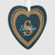 Rich Teal Green background, com ouro abraçado coração, rodeado por bolinhas vermelhas festivas; mostra o monograma, o nome e as datas do seu amado. Nas costas, "Forever in My Heart" homenageia seu amado. Também perfeito para um querido animal de estimação. Você pode excluir as datas e alterar o texto no verso também.