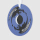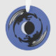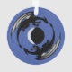 Dois dragões negros voadores circulam uma lua crescente nesta design de fantasia de Richard H. Fay.
