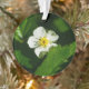 Visão macro de uma flor de morango selvagem rodeada de folhas verdes. Primavera é a estação de florescimento