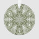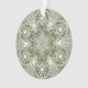 Esta mandala branca senta-se sobre um musgo escuro ou fundo verde-oliva. As cores são harmoniosas e equilibradas. Parte da coleção Howlsplann Mandala.