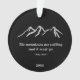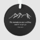 Este ornamento personalizado, com fita, caracteriza um design bestselling & original da silhueta da montanha que os olhares como as montanhas sejam cobertos na neve, sobre um fundo preto. As citações populares do naturalista John Muir: "As montanhas estão chamando e eu devo ir." está embaixo. A montanha com citações e a cor do fundo são modelos assim que pode facilmente ser alterada. O ano deve ser personalizado apenas datilografando sobre o texto. Mostre seu amor para as montanhas!