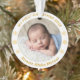 Personalize this modern and elegant “My First Christmas” ornament with your baby boy’s photo, his full name, and his birth year. The round design features refined gold lettering with delicate snowflake accents that beautifully frame his photo for a timeless keepsake. A perfect way to celebrate his very first holiday season, this ornament brings warmth and charm to any Christmas tree. Photo tip: crop photo to a square format before uploading to the site.