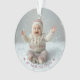 Cute Christmas keepsake ornament featuring the words "My First Christmas" between snowflakes and your favorite photo of your precious newborn (on the front) and beautiful typography (on the back) which reads "Unto Us a Child is Born". Tip: Change the pink text and background colors to match your photo.