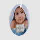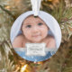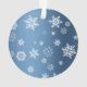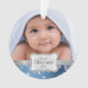 Adicione seus próprios ornamento personalizados foto do Xmas do bebê. Meu ø Natal. Flocos de neve dos azuis marinhos e do branco do bebé com fita de prata. Feliz Natal!