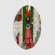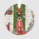 O Natal do Cachorro Miniatura, sentado do lado de fora da casa decorada com coroa de Natal, a árvore de Natal é uma ideia perfeita de presente de Natal para amantes de cachorros.