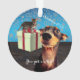 Um Doberman pergunta, "Você tem o quê!" Um gatinho em um presente nas costas.