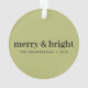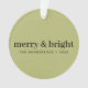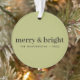 Um enfeites de natal simples, na moda, minimalista, com uma citação tipográfica moderna e minimalista "feliz e brilhante" a preto num fundo verde-oliva. O nome, o ano e a saudação podem ser facilmente personalizados para um toque pessoal, perfeito para a época festiva! #natristmas #merryandbright #mínimo