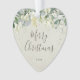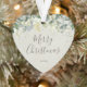 Folhas de eucalipto pintadas à mão e ramos de cereja do neve formam uma borda na parte superior deste ornamento em forma de coração. Todo o texto é totalmente editável para que possa facilmente alterar a redação e alterar o estilo/cor/tamanho/posição da fonte.