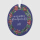 Este adorável e personalizado ornamento de árvore de Natal é perfeito para qualquer avô que faça pontapés. Ela mostra a frase, "Nosso Primeiro Natal como Avós", em cima de uma poinsettia vermelha, floral, morango vago, e coroa aquática verde em cima de um simples fundo azul marinho na frente e uma fotografia personalizada do seu neto na parte de trás. É elegante, bonito, doce e especial; a forma perfeita de celebrar o seu amor pelos seus netos. ***NOTA DE DESIGN IMPORTANTE: Para qualquer solicitação de design personalizada, como solicitações de correspondência de produtos, alterações de cor, mudanças de posicionamento ou qualquer outra solicitação de alteração, clique no botão "MENSAGEM" ou envie um e-mail ao designer diretamente em lafemme.art@gmail.com. Você pode até enviar um e-mail para ela solicitando um design completamente personalizado e novo.