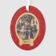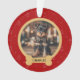 Celebre seu amigo peludo nesta temporada de festas com um enfeite de Natal personalizado com foto de animal de estimação. Este enfeite vermelho festivo apresenta um padrão natalino fofo, uma foto personalizável e uma plaquinha de identificação personalizada em forma de osso.