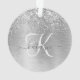 Personalize facilmente esse ornamento de tendência com brilho bonito prateado brilhante em um fundo metálico escovado prateado.