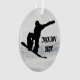 Enfeites de natal do Snowboarder acrílico com nome e data modelo. Silhueta preta de uma moto de neve estilo livre sobre um fundo branco de fotografia de neve. O reverso é apenas neve vazio. Um tema negro e branco, neutro em termos de gênero, poderia ser para um menino ou uma menina.