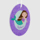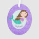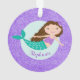 Este ornamento da sereia apresenta uma bela sereia branca em um fundo falso de brilho roxo. Personalize-o com um nome. A design é a mesma atrás.