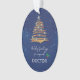 Compartilhe o espírito da temporada com um médico incrível! Este presente foi projetado para que você possa enviar seus cartões de natal mais quentes. A árvore de Natal de cor fria destaca-se do fundo azul marinho. O que torna este presente ou ornamento mais interessante é que você pode ter o nome do médico nas costas.
