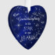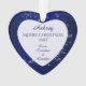 Nosso Enfeites de natal de neta mais vendido foi atualizado este ano! Ele apresenta uma estrela prateada e um padrão de flocos de neve em um fundo de gradiente azul profundo. No centro está seu texto personalizado em branco. Diz: "Nossa neta é a estrela do nosso coração. A parte de trás do ornamento tem a estrela prateada e o fundo azul como uma borda, com um interior de coração branco que mantém o seu texto personalizado em azul correspondente. Este é um enfeite que sua neta sempre vai tesourar.