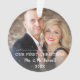 Nosso Primeiro Ornamento Fotográfico de Casamento Moderno de Script de Natal. Enfeites de natal moderno e elegante com uma foto de cheio, Sr. e Sra. e o ano em um roteiro branco moderno com flocos brancos de neve em diferentes tamanhos. Personalize o ornamento com sua foto favorita de casamento, seu nome e o ano - faça sua linda festa de natal de 1rua ou um presente para sua família e amigos.