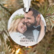 Um ornamento verdadeiramente para guardar, apresentando suas 2 fotos de casamento favoritas, nosso primeiro Natal como, caligrafia Sr & Sra com coração conectando, sobrenome e ano sobre as fotos. Faz um presente encantador!!