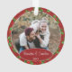 Enfeite de árvore de Natal de dezembro com espaço para personalizar ou customizar com os nomes de sua escolha em uma fonte elegante, uma foto pessoal e data do ano de sua escolha. Com um lindo padrão sazonal de folhas de azevinho verdes e bagas vermelhas como decoração. Lembrança única de memórias que os avós de seus filhos, outros familiares ou amigos irão amar!