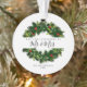 Surpreenda os recém-casados com este nosso Natal de 1rua como Sr. e Sra. Manuscrito. É um design elegante em ambos os lados do ornamento de fundo branco personalizável e tem com "Nosso Primeiro Natal Como Sr. e Sra." em letra de roteiro manuscrita. Personalizado com o ano e o sobrenome da nova vida na parte inferior. Faz uma ideia perfeita de presente. Clique na opção personalizar modelo e siga as instruções.