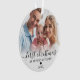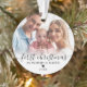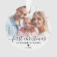 Primeiro Natal como Mamãe e Papai 2 Enfeite de Foto. Celebre a sua primeira época de festas como novos pais com este enfeite personalizado e elegante. A frente apresenta uma foto querida - seja do seu bebé ou de um momento doce partilhado entre os dois - adornada com a frase "Primeiro Natal como Mamãe e Papai" em caligrafia vermelha e uma fonte serif clássica. O ano também é exibido em vermelho para um toque pessoal festivo. Este texto pode ser alterado de acordo com o seu estilo ou preferência de palavras.