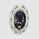 Nosso Primeiro Natal como Sra. & Ornamento de Foto do Sr. Wedding. Um ornamento moderno para recém-casados. O design tem uma fotografia no círculo, nos ramos dos pinheiros e no texto num moderno roteiro do ouro O nosso primeiro Natal como Sra. & Sr. citação e ano de casamento. Insira sua foto na modelo.
