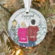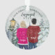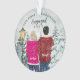 Personalizado Nosso Primeiro ornamento Engajado de Natal apresenta uma cena mágica de neve com casal na neve entre os pinheiros de Natal e um posto de lâmpadas. Fácil de personalizar com os nomes dos casais contratados, e ano. Um noivado de Natal de 1rua único para este feriado. Encontre outras combinações de cores em nosso compro.