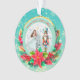 Description: Celebrate the magic of the holidays with this enchanting personalized Christmas ornament! Featuring a beautiful illustration of Clara from The Nutcracker ballet holding her beloved Nutcracker, alongside a festive Christmas tree and vibrant poinsettias, this ornament is a perfect keepsake. The front can be customized with a name (e.g., "Olivia as Clara") and the year, making it a truly unique memento. The reverse side carries a heartfelt "Merry Christmas! Wishing you a Happy and Healthy New Year. Love [Your Family Name]" message, surrounded by sparkling gold accents and a beautiful bokeh background. Crafted from a lovely teal and snowflake border, this ornament adds a touch of classic holiday charm to any tree. It's an ideal gift for ballet lovers, children, or families looking for a special way to commemorate the festive season.