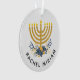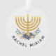 Nosso design de ornamento de manutenção apresenta o nome do bebê e uma menorah de aquarela com um buquê de flor no lado frontal e o ano e "Primeiro Chanucá" no lado oposto. Se preferir uma cor de fundo diferente, escolha a opção personalizar. #Hanukkah #Ornaments #FirstHanukkah