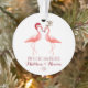 Ornamento O primeiro Natal contratado ou casou flamingos