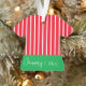 Vermelho e listras brancas em Camisa Verde com ornamento de data de nascimento para o primeiro Natal do bebê. Nome de um lado, data do outro.