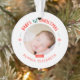 Adorável ornamento de fotos de "natal do primeiro natal do bebê" vermelho, desenhado por Shelby Allison. Fotografia © Kate Williams: https://www.flickr.com/people/kate_williams/ e fornecida pela Creative Commons: https://creativecommons.org/licenses/by/2.0/