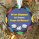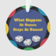 Ornamento coco colorido e divertido para o seu jogador favorito do Bunco. O Que Acontece No Bunco Fica No Lema engraçado Bunco. Inclui três dados sortudos do Bunco nesta design de cor.