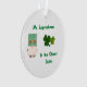 O Sr. Leprechaun, no sistema de Clover, com um duende e um trevo num ornamento de férias, adiciona um pouco de irlandês à sua Árvore de Férias.