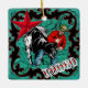 Ornamento da luta do boi do vaqueiro do rodeio com o ornamento cerâmico do fundo de couro do falso