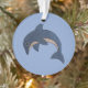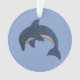 Este ornamento acrílico redondo tem um golfinho de desenho que pula com brilho e que é azul escuro com uma parte inferior branca sobre um fundo azul brilhante. Personalize o texto no verso com o modelo.