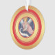 Adjunto, o ornamento da árvore Jesse é o "Angel" da árvore Jesse. O anjo é o símbolo do 26º dia do advento com o verso das escrituras de "Glória a Deus no alto, e sobre a Terra paz entre homens com quem Ele está bem satisfeito." Uma ilustração medieval e anjo no céu. Ilustração colorida para um Calendário Avançado da Árvore Jesse. Ouro com aspecto de folha.