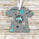 Este adorno divertido para um menino tem aviões azuis, negros e cinzas voando por todo o lado! Há dois estilos de aviões em diferentes padrões e cores. Entre os aviões estão as estrelas azul, preta e cinza. No centro está um avião azul enquadrado em um círculo preto. Tudo é colocado sobre uma cinza média. O nome do seu filho está escrito em branco no centro do plano azul na frente. As costas têm o mesmo design de avião sem o nome.