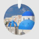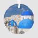 Igrejas Azuis Telhadas estão em toda parte na ilha. As cidades abraçam os Lados das Montanhas. Santorini. Grécia. Crédito como: Tom Norring / DanitaDelimont.com