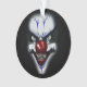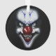 Um palhaço mau muito assustador com as decorações azuis em seus cara e dentes afiados.