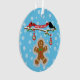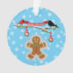 Gingerpão na neve brincando com os flocos de neve derramados enquanto os cardeais e pássaros negros estão te desejando "Feliz Natal".