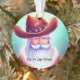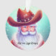 Esta design de Natal ao estilo ocidental mostra Papai Noel em um chapéu de vaqueiro, com neve em um bonito fundo azul.