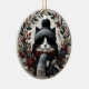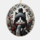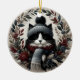 Traga calor e timidez à sua decoração de férias com este adorável ornamento, com um na moda preto-e-branco vestido com um confortável chapéu de inverno e cachecol inspirado nos Nórdicos. Cercada por uma coroa elegante de bagas, folhas e flores mudas, esta design é perfeita para amantes de gatos que apreciam um toque de magia de inverno. Seja exibido na sua árvore de Natal ou doado a um companheiro entusiasta do felino, este ornamento é uma forma deliciosa de celebrar a estação com um toque de personalidade e charme.