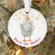 Um dos lados deste ornamento branco tem um pato branco de abóbora vestindo um verde-d'água e uma coroa de morango. O outro lado apresenta uma bonito camada de aquarela com a mensagem "Feliz Natal". Todas as cópias podem ser alteradas e personalizadas como você prefere usar a ferramenta personalizar.