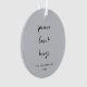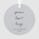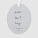 Simples, na moda, ornamento de feriado minimalista com a moderna tipografia de escrita manual informal escrita casual, citando "Peace Love & Hugs" a preto com um fundo branco simples e limpo. O nome e o ano podem ser facilmente personalizados para um toque pessoal. Um design de natal elegante, minimalista e contemporâneo para se destacar da multidão nesta temporada de festas! #natal #mínimo #ornamento
