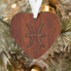 Um Sinal Zodiac Peixes renderizado em um rico fundo de grão de madeira de Mahogany. Um design clássico para uma ideia de presente de aniversário personalizada de excelente. Use o link "Perguntar a este Designer" para entrar em contato conosco com suas solicitações especiais de design ou para obter assistência com suas necessidades de personalização.