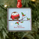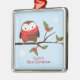 Simples ilustração adorável de uma coruja marrom vestindo um cachecol vermelho empoleirado em uma árvore sobre um fundo azul claro. Personalize com seu nome, monograma, iniciais, data ou texto escolhido. Perfeito como presente de aniversário, saquê de bebê, ornamento de decoração de berçários, etc