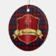 O ornamento cerâmico colorido de xadrez, com o padrão tradicional de xadrez de tartan MacLachlan, vermelho, azul e verde, como fundo. Gráficos de um escudo vermelho e dourado como placa, tem texto preto personalizado pronto para personalizar. ornamento familiar de herança de excelente. Faz um enfeite e decoração de presente de excelente para outros usos na casa.